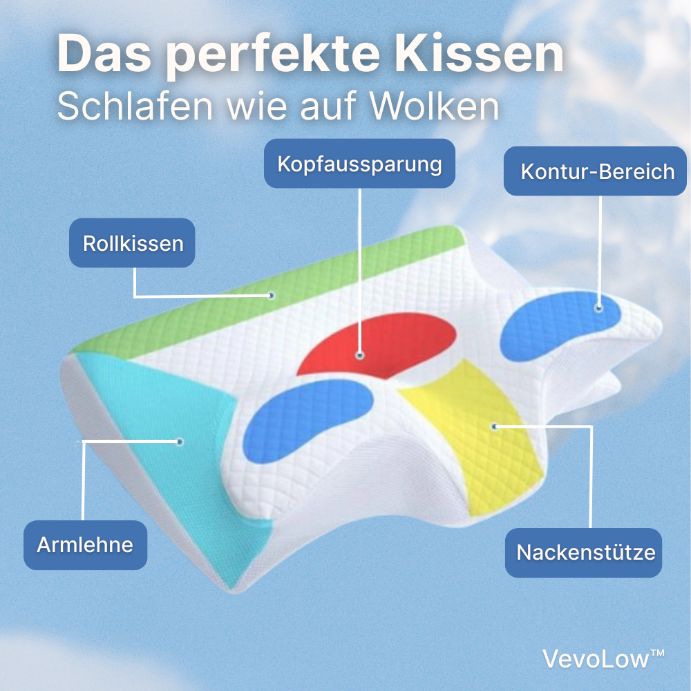 VevoLow™ ist ein ergonomisches Premium-Kopfkissen, das entwickelt wurde, um deinen Nacken und deine Wirbelsäule optimal zu unterstützen. Durch den hochwertigen Memory Foam passt es sich individuell an die Form deines Körpers an und fördert so einen erholsamen und entspannten Schlaf.
